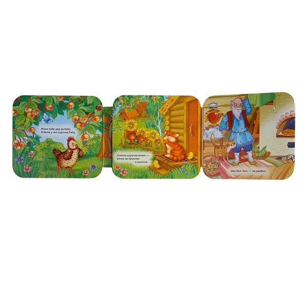 Русская народная сказка о курочке, которая снесла золотое яичко, пользуется большой популярностью у малышей. Книжка-гармошка с яркими, веселыми иллюстрациями прекрасно подойдет для совместного чтения и игры с ребенком. Книжка сделана из качественного картона с глянцевой пленкой.
