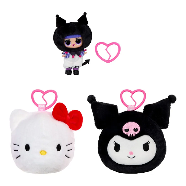 В игровой набор ЛОЛ CЮРПРАЙЗ Кукла в шаре двусторонняя плюшевая игрушка с куклой Hello Kitty & Friends входят мини-кукла, наряд, 1 пара обуви, аксессуары, плюшевый шар с брелоком в форме сердца.