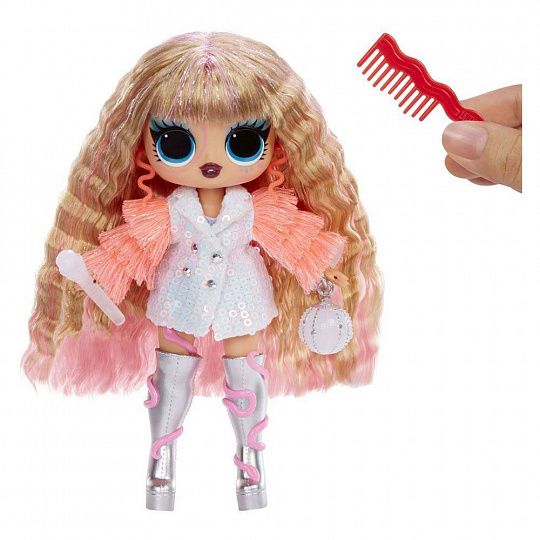 Соберите всю коллекцию! В игровом наборе ЛОЛ СЮРПРАЙЗ Tweens Neon модная кукла Теа Старс с длинными густыми прошитыми волосами и с подвижными ручками и ножками, комплект одежды и обуви, сережки, 6 аксессуаров, расческа, УФ-фонарик.