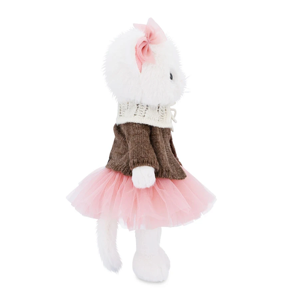 Каждая кошечка упакована в коробку нежно-розового цвета, внутри которой вас ожидает подарок - гардероб и плечики, на которые удобно вешать наряды.