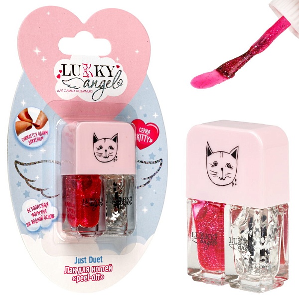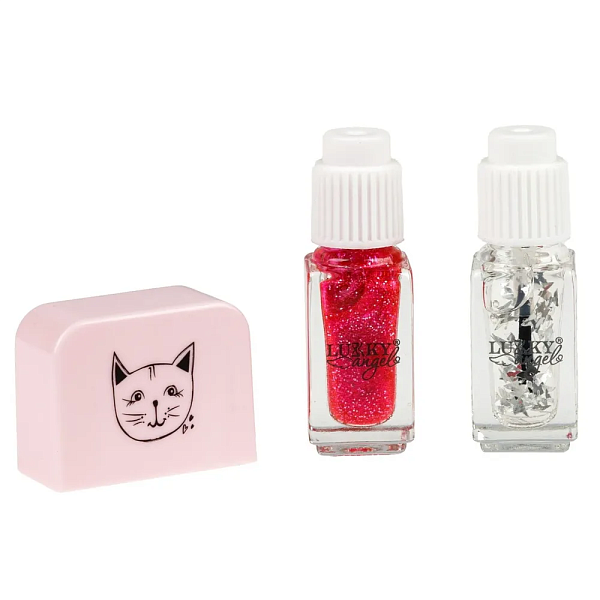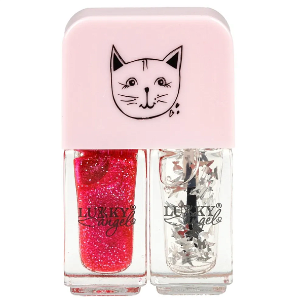 Двойной лак для ногтей Lukky Angel Just Duet коллекция Kitty, цвета: жемчужно-розовый и ярко-розовый.