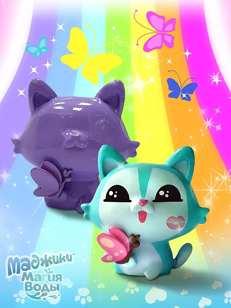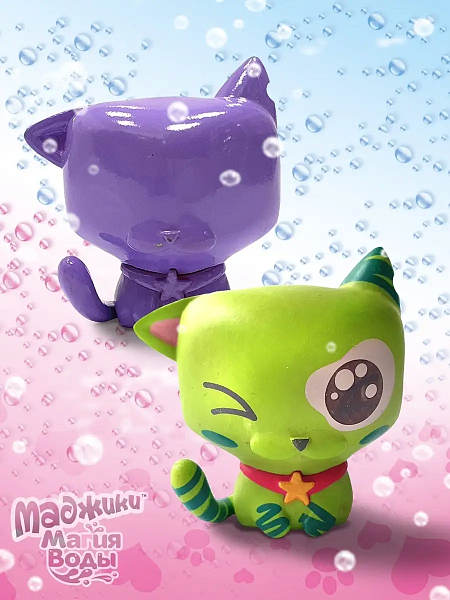 Представляем совершенно новую коллекцию Маджиков с уникальными свойствами от издательского дома DeAgostini (ДеАгостини) - Маджики Магия воды. Котята. (Magiki Water reveal. Kitties.) Каждая фигурка котенка в пакетике покрыта специальной краской. Чтобы узнать какой персонаж вам попался нужно поместить фигурку в теплую воду и краска магическим образом окрасит воду и высвободит истинный облик персонажа.А еще каждый котенок приготовил сюрприз - в холодной воде они могут изменить выражение своей мордочки.Все фигурки обладают более крупным размером в сравнении с прочими фигурками из коллекций под брендом Маджики.В коллекции всего 12 котят.