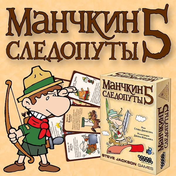 Отыщи Философский пельмень, поставь Блатные номера на cкакуна, наполни Фляжку-куражку Святой минералкой! Застеби Мелкого бога, порви Шнурков, выбей последний глаз Циклопу. Рассмеши Мастера, заставь его поперхнуться колой или оборви трёп за игровым столом - и всё ради уровня! Вступай в Следопуты! Неси свой здоровый манчкинизм в леса и горы, и любимая игра предстанет перед тобой в новом свете! И во всех цветах!