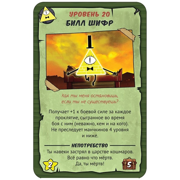 Гравити Фолз - пожалуй, самое странное место в мире. Зомби, гномы, русалки, соприкосновения миров и разная чертовщина - это упрощенные планы жителей на понедельник! А уж если вы приехали сюда на летние каникулы, то приключениям точно быть. А кто, как не манчкины знают в это толк! Уж в Гравити Фолз точно найдутся двери, которые можно выбивать, монстры, с которыми нужно биться, да нычки, которые не грешно обчистить.