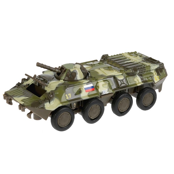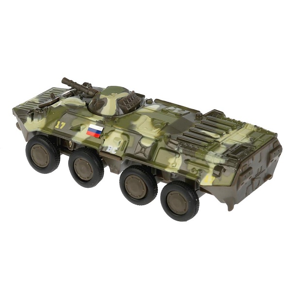 Инерционная металлическая модель «БТР-80» ТМ «Технопарк» непременно понравится юному любителю военной техники: