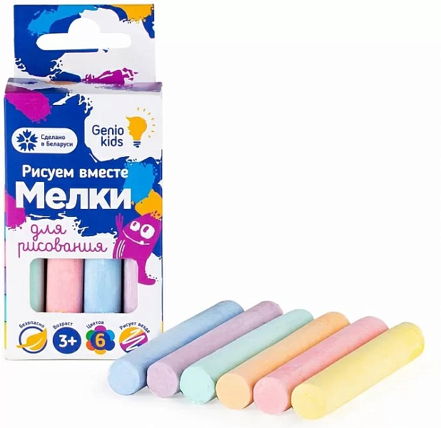 Мел 6-ти цветов: розовый, голубой, салатовый, желтый, оранжевый, фиолетовый.
