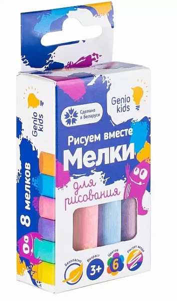 Цветные мелки с круглым корпусом предназначены для письма и рисования на школьных досках, асфальте и бетоне. С их помощью малыш сможет создать яркие, радостные и неповторимые картины. Набор из 8 тонких разноцветных мелков в картонной упаковке с "окошком".