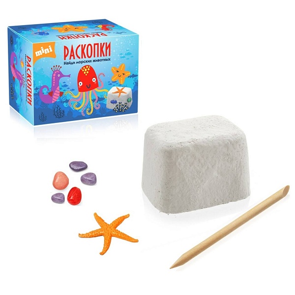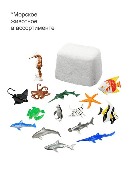 Морские животные в наборе в ассортименте, так что покупая раскопки повторно, ребенку будет так же интересно искать клад, как и в первый раз.