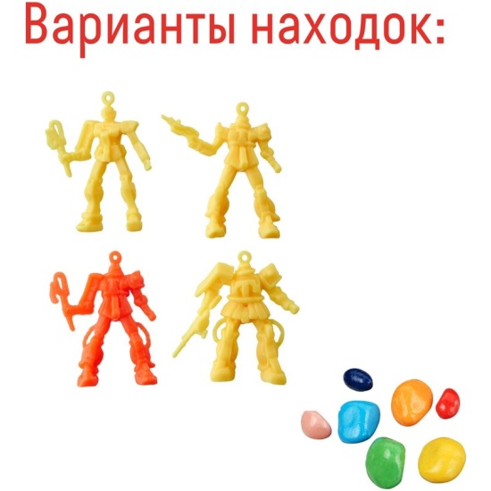 В наборе: брусок с находками внутри, палочка для раскопок. Цвета находок в ассортименте