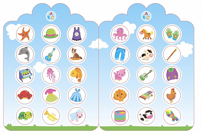 С помощью круглых наклеек и красочных иллюстраций ваш малыш познакомится с первыми цветами, научится считать от 1 до 5 и выучит новые слова.