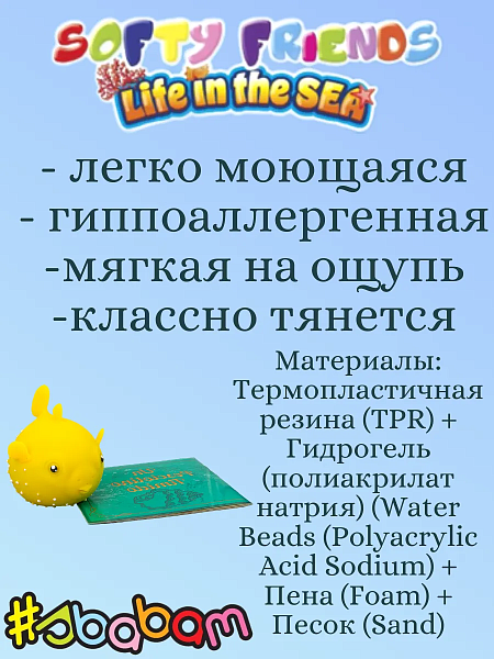 "Морские животные "Softy friends" от бренда SBABAM представляет собой уникальную коллекцию мягких и приятных на ощупь игрушек, идеально подходящих для детей и взрослых, стремящихся к расслаблению и уменьшению стресса. Созданные из экологически чистой термопластичной резины (TPR) и резины, эти игрушки не только безопасны для здоровья, но и обладают высокой степенью устойчивости к износу.