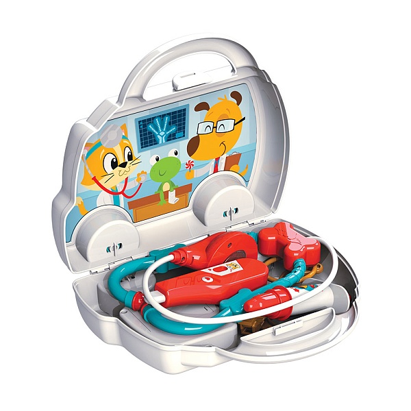 С этим набором детям интересно будет лечить друг друга или своих любимых кукол и плюшевых зверят. Можно мерить температуру, слушать биение сердца, делать уколы! Такие игры прекрасно развивают коммуникативные навыки, речь, фантазию и способствуют социальной адаптации.