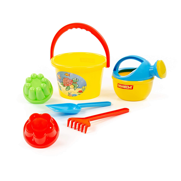 Комплектация: ведро, совок, грабли, формочка - 2 шт., лейка