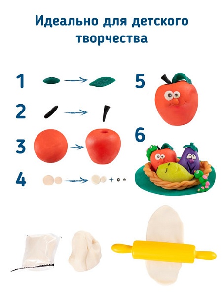 Тесто-пластилин способствует развитию творческих способностей и воображения у детей, развивает мелкую моторику, знакомит с формами и цветами.