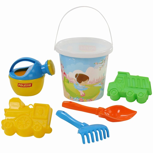 Комплектация: ведро, совок, грабли, лейка, формочка - 2 шт. Материал: пластик