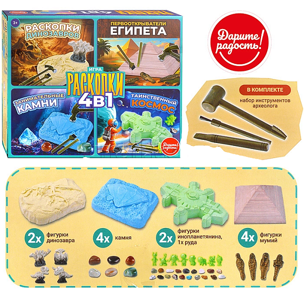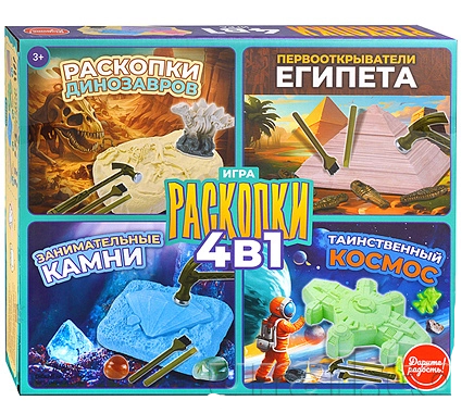 Набор для проведения раскопок 4 в 1 "Динозавры/Египет/Камни/Космос" UT0240-2