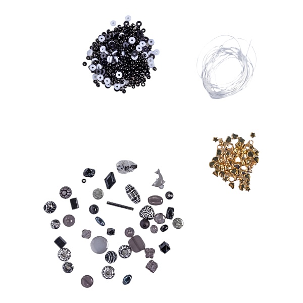 - пластиковые бусины разной формы черно-белой гаммы - 1 упаковка.