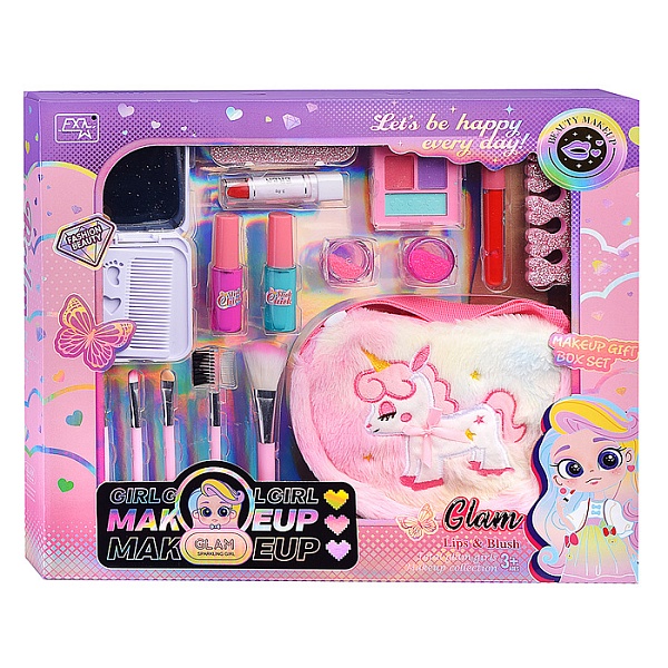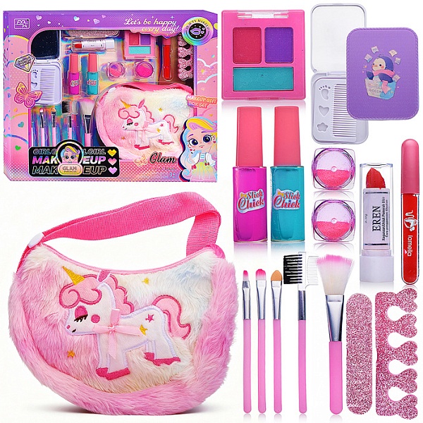 Набор детской декоративной косметики с мягкой плюшевой сумочкой с единорогом . Этот набор, станет идеальным подарком для маленьких девочек в возрасте от 5 до 12 лет.