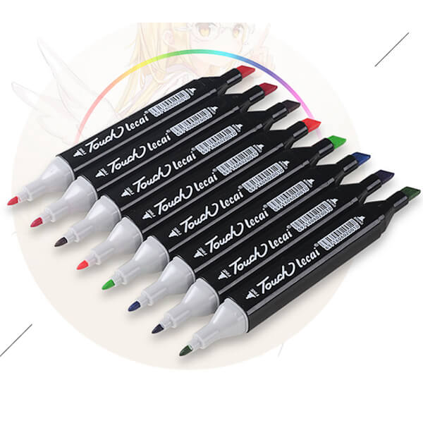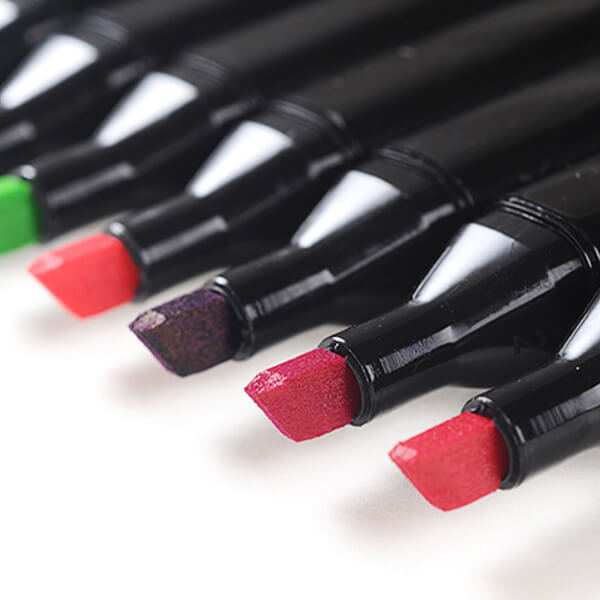 Маркеры двусторонние: одна сторона классической формы, вторая - скошенная.