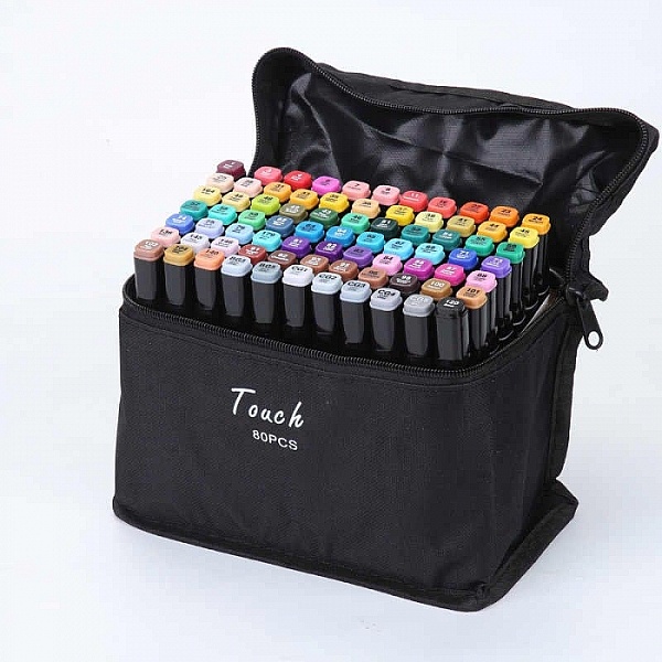 Набор профессиональных двусторонних маркеров для скетчинга 80 цветов в чехле.