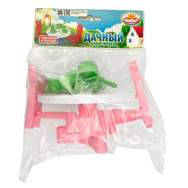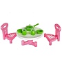 Любой девочке хочется, чтобы у ее кукол было как можно больше аксессуаров для интересных и увлекательных игр. Яркая мебель с комплектом посуды станет прекрасным подарком для Вашей малышки! В «Дачный» комплект входит: стол круглый, 2 стула, 5 предметов посуды. Набор подходит для кукол ростом до 15 см.