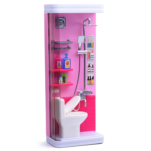 Создайте уютное и функциональное пространство для кукол с этим очаровательным розовым набором! Комплект включает все необходимое для обустройства ванной комнаты: душевую кабину, унитаз, раковину и аксессуары. Нежный розовый цвет и продуманные детали делают этот набор мечтой для любой маленькой хозяйки.
