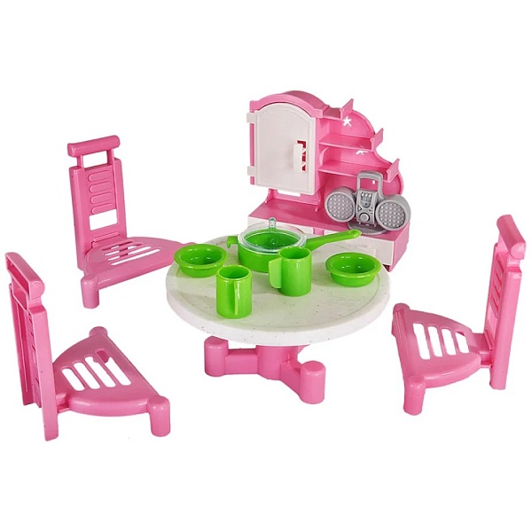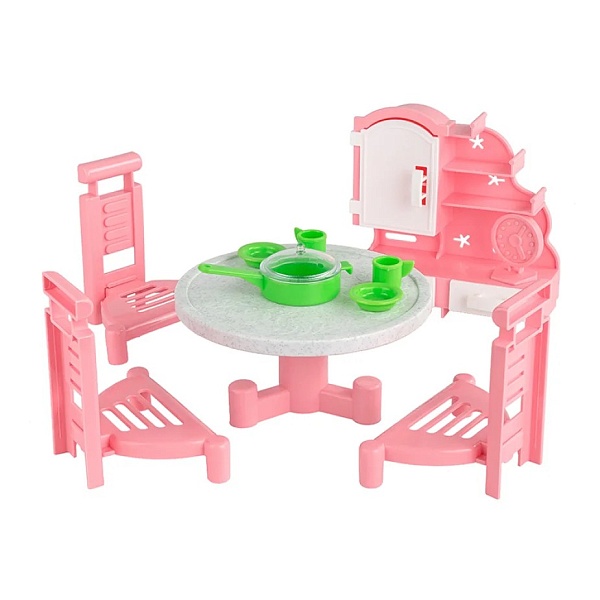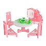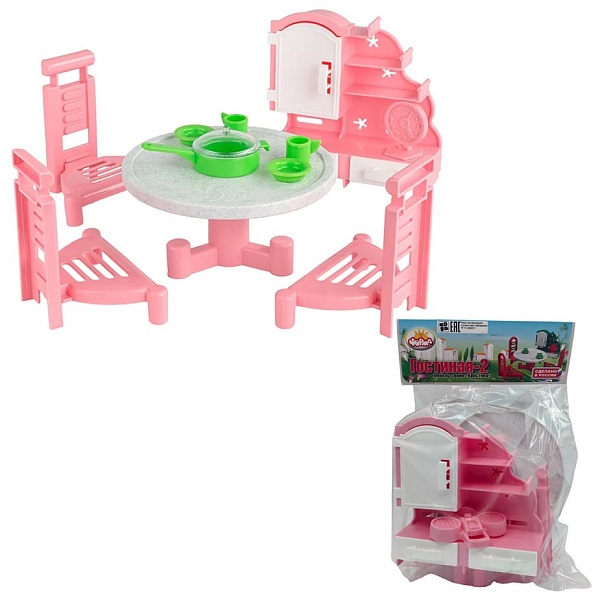 Набор игровой мебели "Гостиная" станет отличным дополнением кукольного домика. Он подойдет для пупсиков и кукол высотой 12-15 см и состоит из стола, 3 стульев, серванта с полочками и дверцей, 4 предметов посуды и настольных часиков. С такой уютной гостиной малышка сможет придумывать множество увлекательных игр, развивающих фантазию, сюжетно-образное мышление и мелкую моторику. Цвета представлены в ассортименте.
