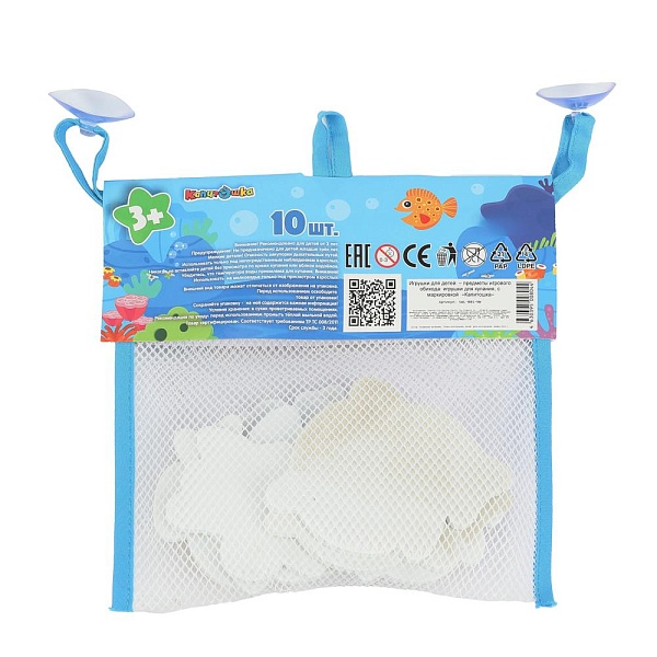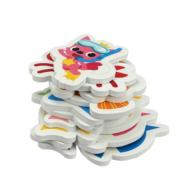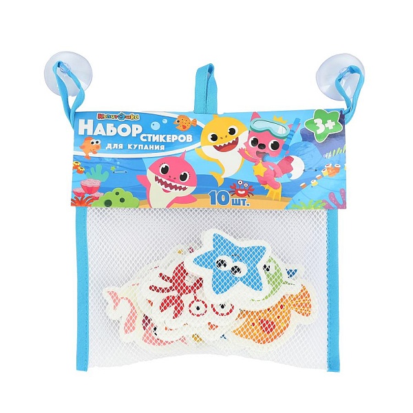 Фигурные стикеры с изображением красочных акул привлекут внимание и поднимут настроение малышу. Фигурки можно запускать в плавание, расставлять на краю ванны или, намочив их водой, крепить на плитку, придумывая истории и сценки. Ребёнок не захочет расставаться с яркими интересными игрушками и завершать водные процедуры. Больше никаких слёз во время купания! Стикеры находятся в сумочке-сетке, у которой имеются присоски и петелька для удобного крепления в ванной.