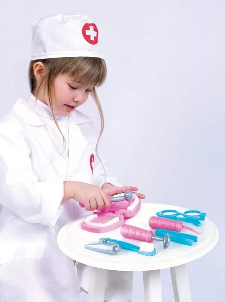 Научит ребенка ухаживать за зубками и поможет не бояться настоящего стоматолога.