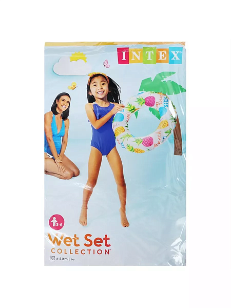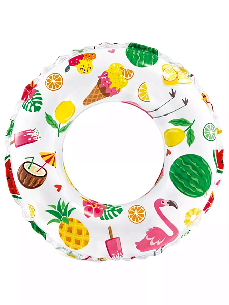 Надувной круг имеет диаметр 61см,есть несколько видов цветового оформления.