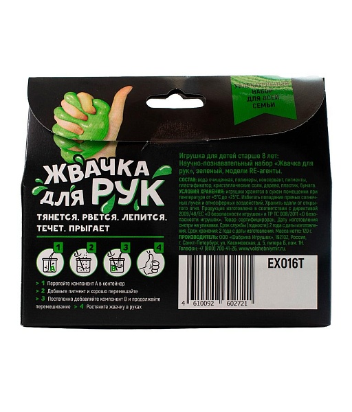 Научно-познавательный набор "Жвачка для рук", зеленый, модели «Re-Агенты» EX016T