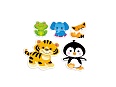 С набором контурных пазлов «Животные» малыш сможет собрать фигурки 5 зверьков: слона, лису, пингвина, лягушку и тигра.