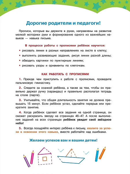 Занимаясь по этой тетрадке, ребёнок тренирует МЕЛКУЮ МОТОРИКУ, развивает ПРОСТРАНСТВЕННОЕ и ЛОГИЧЕСКОЕ МЫШЛЕНИЕ, ПАМЯТЬ, КОНЦЕНТРАЦИЮ ВНИМАНИЯ и ТВОРЧЕСКИЕ СПОСОБНОСТИ.
