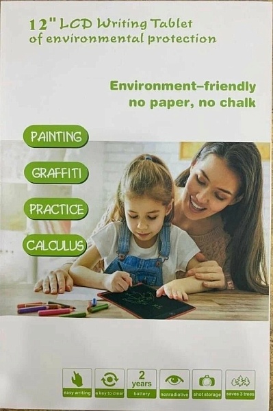 Планшет LCD – это универсальная электронная пластиковая доска, на которой стилусом можно рисовать, писать тексты и, при необходимости, их быстро удалять. На нем можно оставлять записи своим близким, писать напоминания, заметки, рецепты, рисовать картинки, играть в «крестики нолики» и другие игры, использовать как черновик для домашних заданий и т.д