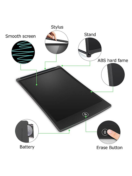 Планшет для рисования пригодится в учебе и для досуга. Рисуйте скетчи, пишите заметки или составляйте списки, а потом стирайте их всего одним нажатием, экономя бумагу.
