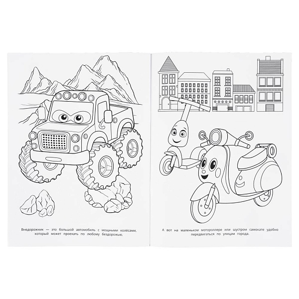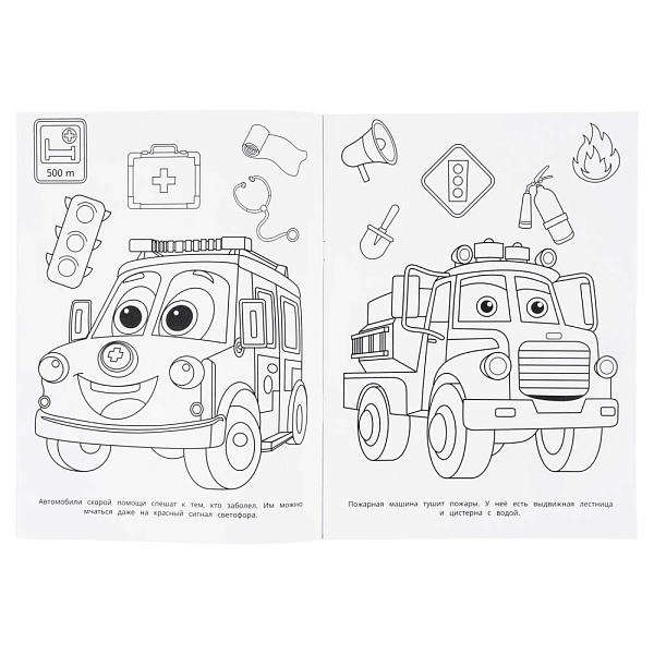 Раскраска «Полезные машинки» ТМ «УМка» обязательно понравится юным художникам: