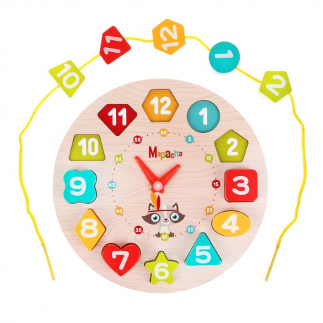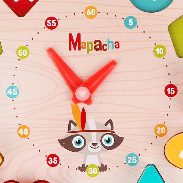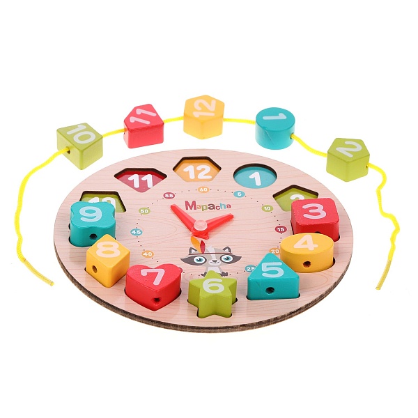 Основные цифры в пределах двенадцати нанесены на фигурные вкладыши, они помогут малышу тренировать логику и быстрее запомнить расположение цифр на циферблате.