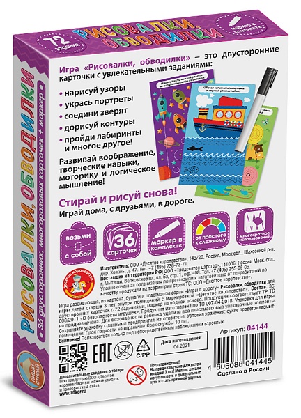 Развивающая игра Пиши-Стирай «Рисовалки, обводилки» 04144