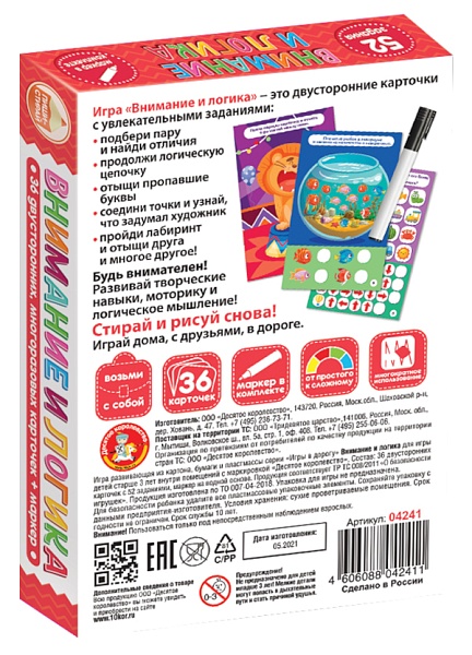 Развивающая игра Пиши-Стирай «Внимание и логика» 04241
