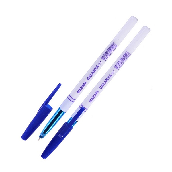 Ручка шариковая Galanta, корпус выполнен из пластика белого цвета. Толщина линии письма - 0.7 мм. Пулевидный пишущий узел - 0.7 мм. Цвет чернил - синий. Сменный стержень - 139 мм.