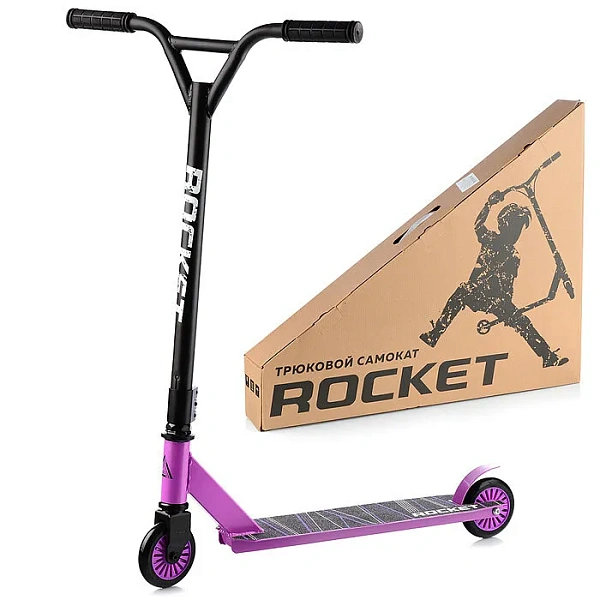 Самокат трюковый ROCKET,колеса PU/пластик 100 мм,ABEC 7, сиреневый R0061.VT