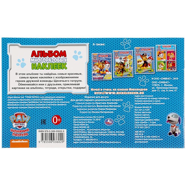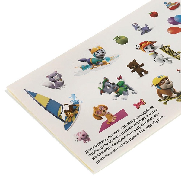 Ребёнок с удовольствием будет приклеивать яркие наклейки с изображением отважных щенков-спасателей и их друзей на альбомы и тетради, создавая на бумаге собственные интересные истории с их участием. Ну а если маленькому любознайке что-то не понравится, стикеры всегда можно переклеить, потому что они - многоразовые! Благодаря компактному формату альбом удобно брать с собой в дорогу.