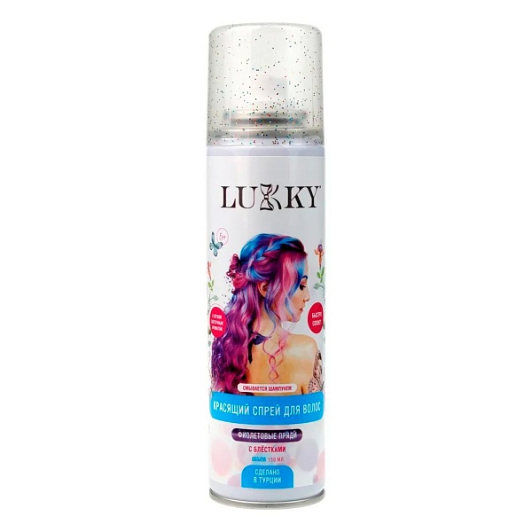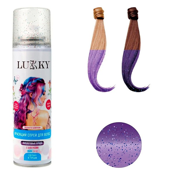 Спрей-аэрозоль для временного окрашивания волос Lukky 1toy Т23416 фиолетовый с блестками. Новые яркие краски Lukky. Сделай окрашивание в домашних условиях на несколько часов или даже дней. Аэрозольные краски легко распыляются и распределяются по поверхности волоса. Временная оттеночная краска поможет завершить образ к выступлению на концерте или долгожданному мероприятию.