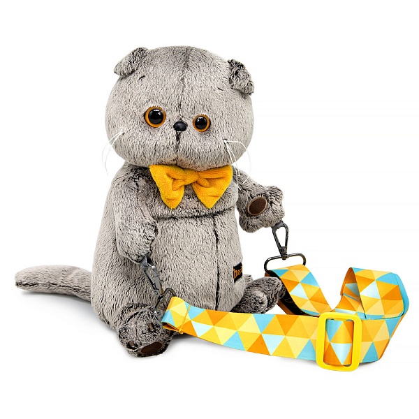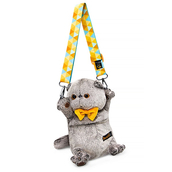 Милая сумка кот Басик с его любимым галстуком-бабочкой из мягкого софта золотисто-охристого цвета. Басик будто раскрывает лапки в дружеском объятии. Сумка сшита из оригинального меха, с одним отделением с подкладкой и фирменным ремнем, который легко регулируются по росту.