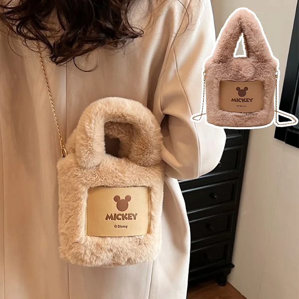 Новая универсальная плюшевая сумка с Микки из мультфильма на осень и зиму, текстурированная сумка-мессенджер, большая вместительная милая плюшевая сумка-ведро
