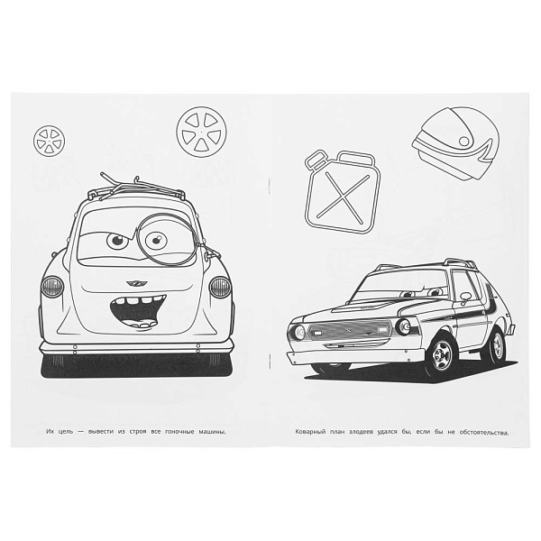Эта увлекательная раскраска с крутыми гоночными машинками непременно понравится вашему ребёнку. В ней он найдёт интересные картинки с чёткими контурами и сюжетными текстами к ним. Благодаря удобному формату раскраску можно взять с собой в дорогу.