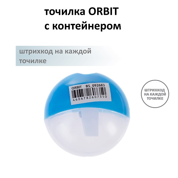 Точилка -ORBIT- Пластиковая Цветная с контейнером Ассорти 4 цв. 24 шт в карт 092683
