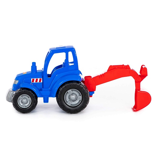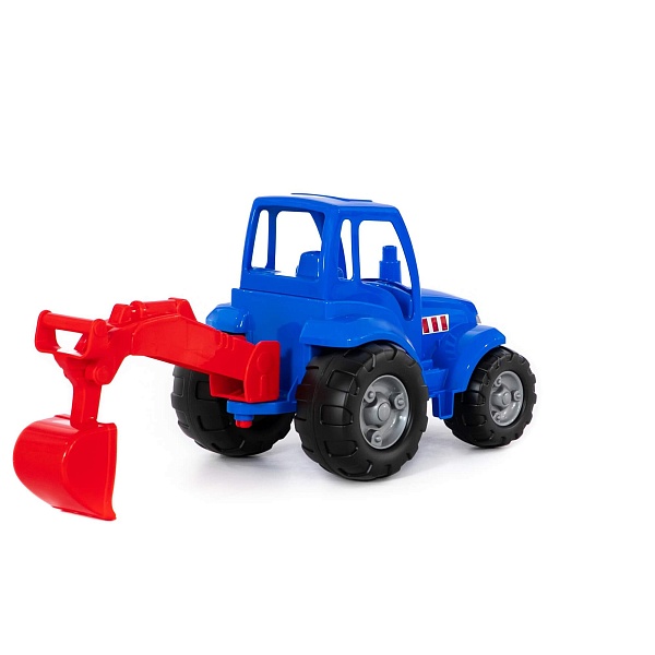 Конструкция трактора предполагает наличие лопаты с рычажным управлением, которая разнообразит игру в песочнице.