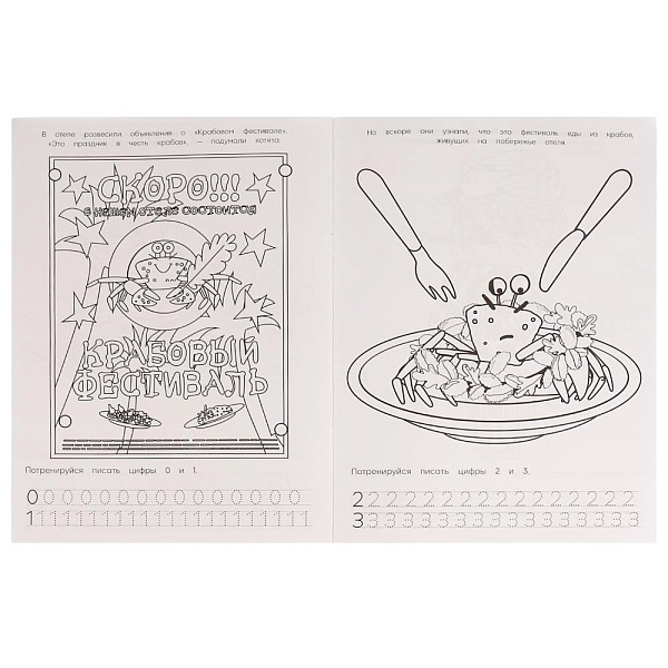 Эта занимательная раскраска с любимыми персонажами не только скрасит досуг ребёнка, но и поможет ему подготовить руку к письму. Раскрашивая картинки с чётким контуром, он окунётся в атмосферу популярного мультфильма, а также познакомится с буквами и цифрами. Благодаря удобному формату раскраску можно взять с собой в дорогу.