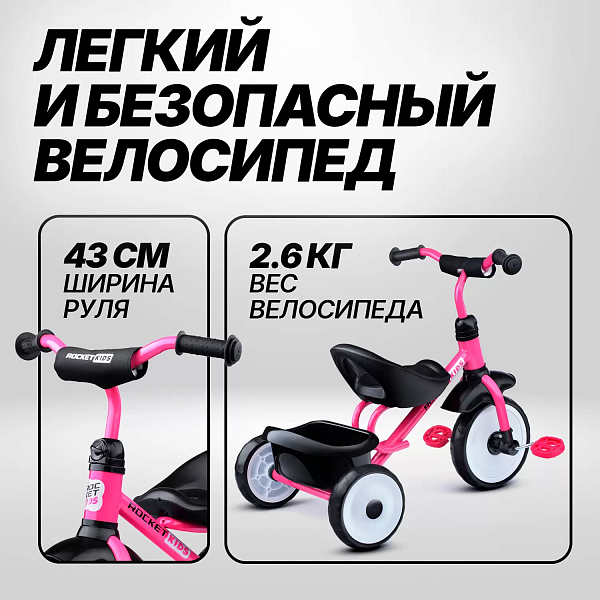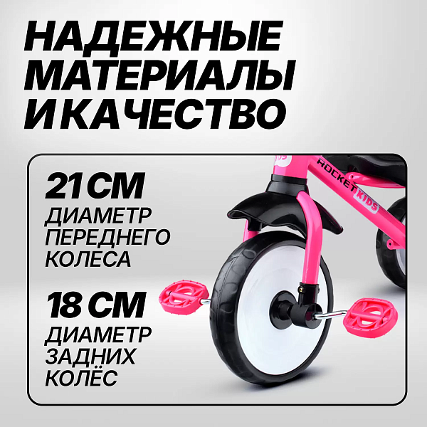 Велосипед трехколесный Rocket, колеса EVA 10"/8", цвет розовый R0135-PK